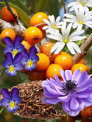 Het driekleurig viooltje heeft uitwendig ontstekingswerende, wondhelende en verzachtende eigenschappen. Rooibos regenereert de huid, is anti-infectieus en werkt verzachtend. Ook Vogelmuur (of Muurkruid) werkt verzachtend, en wordt dankzij haar ontstekingswerende en samentrekkende eigenschappen beschouwt als één van de belangrijkste kruiden voor uitwendige toepassing bij jeuk en huidirritaties. Kaasjeskruid (Malva) vergroot nogmaals de verzachtende, ontstekingswerende werking.
